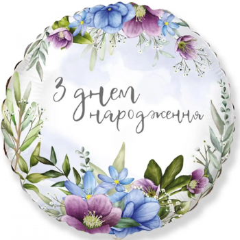 2. Кулька фольгована надута гелієм З Днем народження квіти